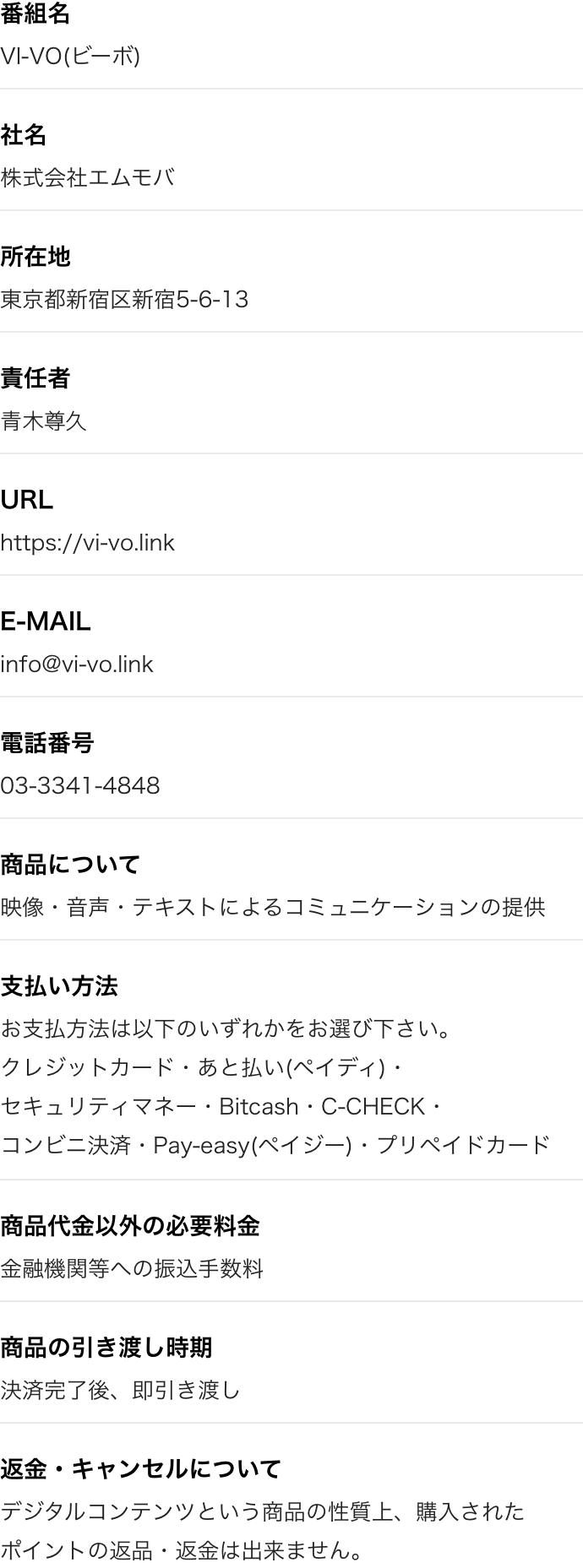 特定商取引法に基づく表記